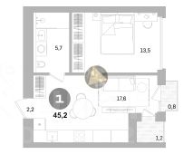 Квартира находится на 12/16 этаже. Общая площадь квартиры 45.2 м2.