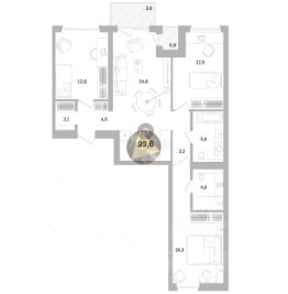 Квартира находится на 5/8 этаже. Общая площадь квартиры 99.6 м2.
