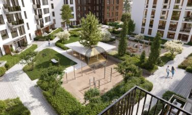 1. Более 70% территории проекта отведено под озеленение. Высажены взрослые лиственные деревья, многолетники кустарники и травы. Озеленение выполнено также на стилобате и кровле крыш корпусов.