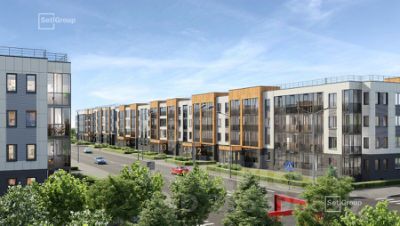 • Скандинавские фасады с отделкой керамогранитом, акцентные входные группы