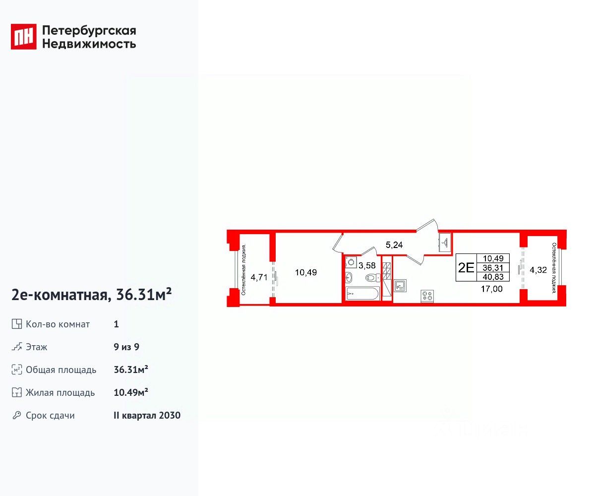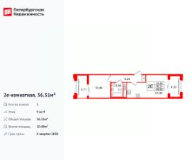 Удобная, классическая, функциональная европланировка, большая кухня-гостиная 17 м², просторная прихожая 5.24 м². Общая площадь квартиры - 36.31 м², жилая 10.49 м², высота потолка 3.2 м.