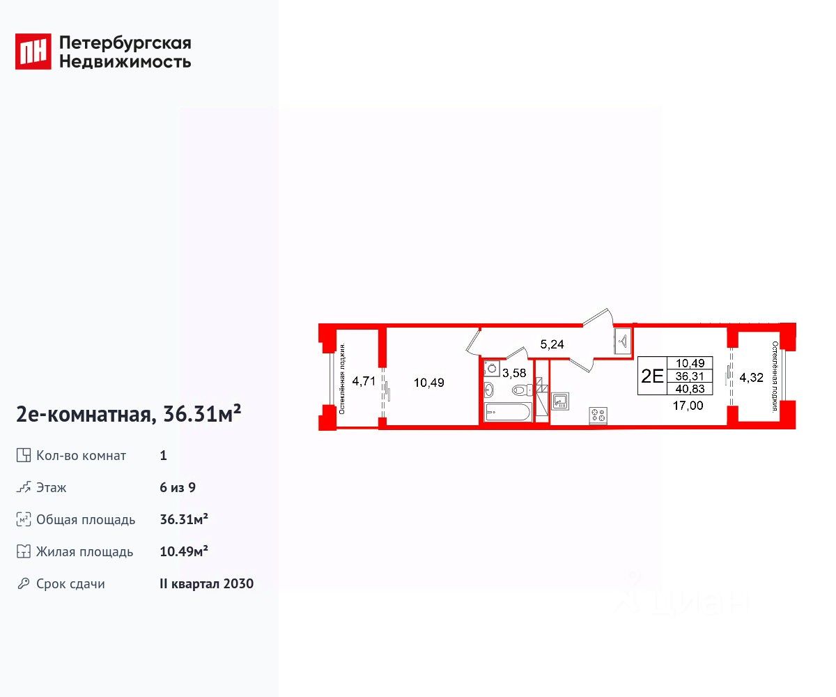 Удобная, классическая, функциональная европланировка, большая кухня-гостиная 17 м², просторная прихожая 5.24 м². Общая площадь квартиры - 36.31 м², жилая 10.49 м², высота потолка 3 м.