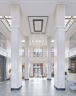 • Парадное лобби с потолком до 6,5 м и лаунж-зоной с камином.
