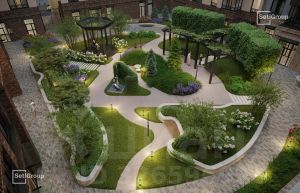 • Камерный сад, зеленая гостиная, фонтан.