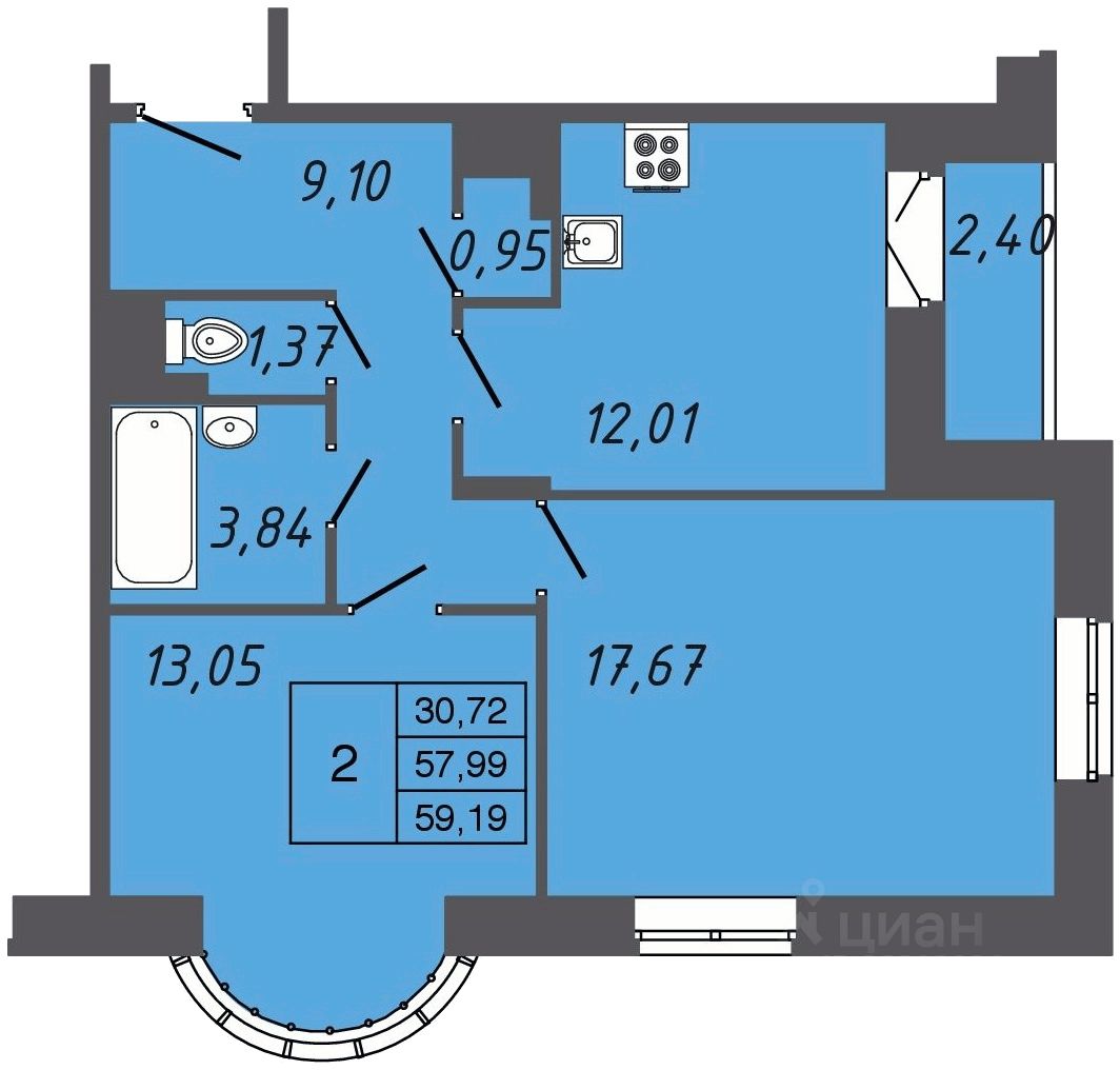 Квартиры продаются без отделки, с остеклёнными балконами и лоджиями.