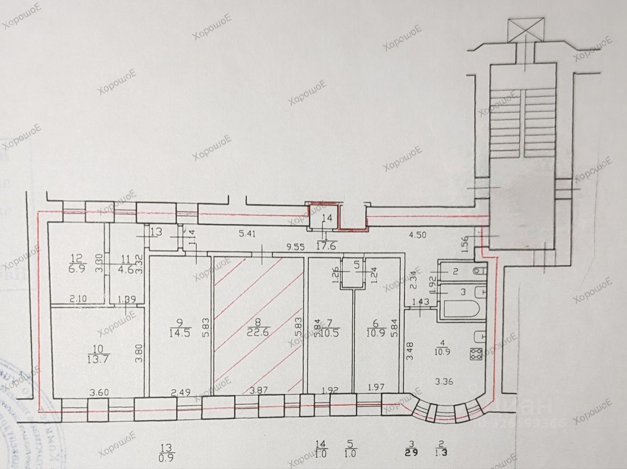 В двух комнатах (15 и 22 кв.м.) сделан ремонт, установлены стеклопакеты, заменены батареи.