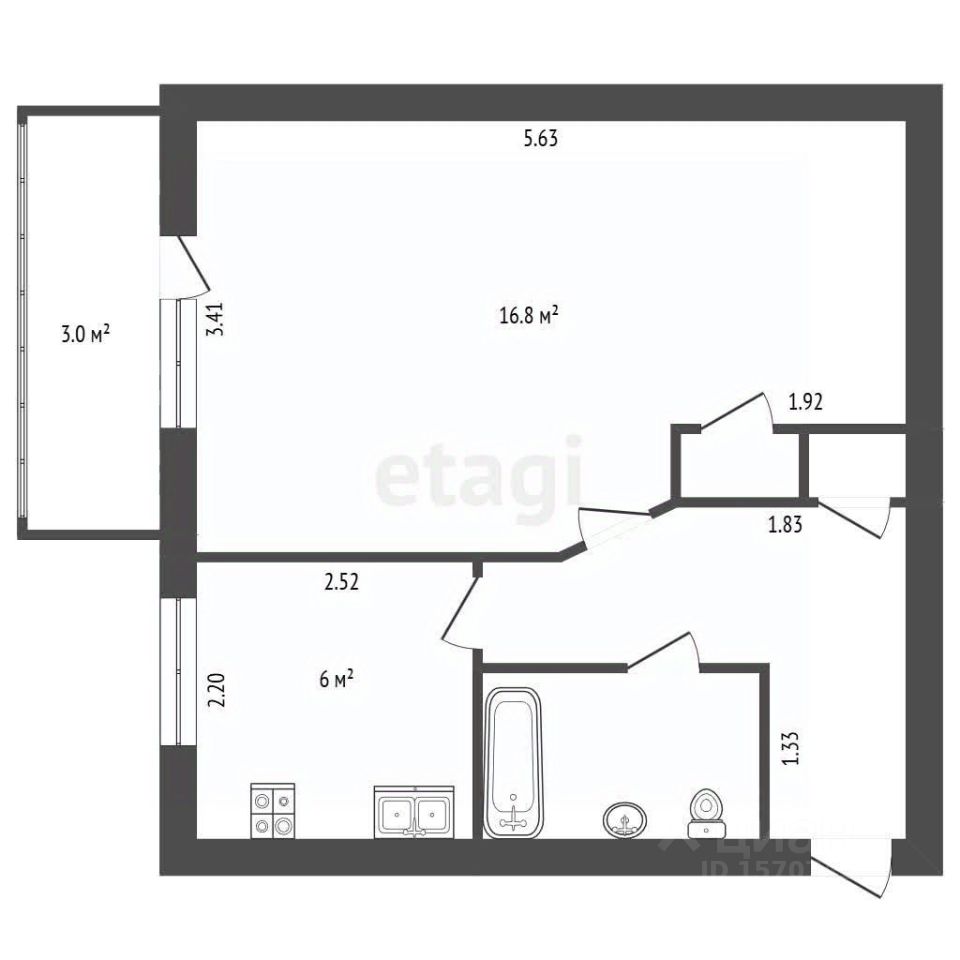 Санузел совмещенный, оборудован ванной. Стены облицованы кафельной плиткой. Газовая колонка обеспечивает бесперебойное снабжение горячей водой и экономит коммунальные платежи.