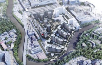 • Вдоль территории комплекса прогулочная набережная реки Охты, а также столы для настольных игр, гамаки, зоны йоги.