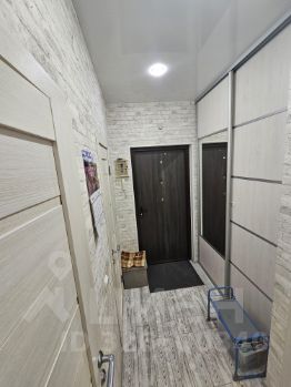 В прихожей установлен вместительный шкаф-купе с полками в потолок и штангой для верхней одежды.