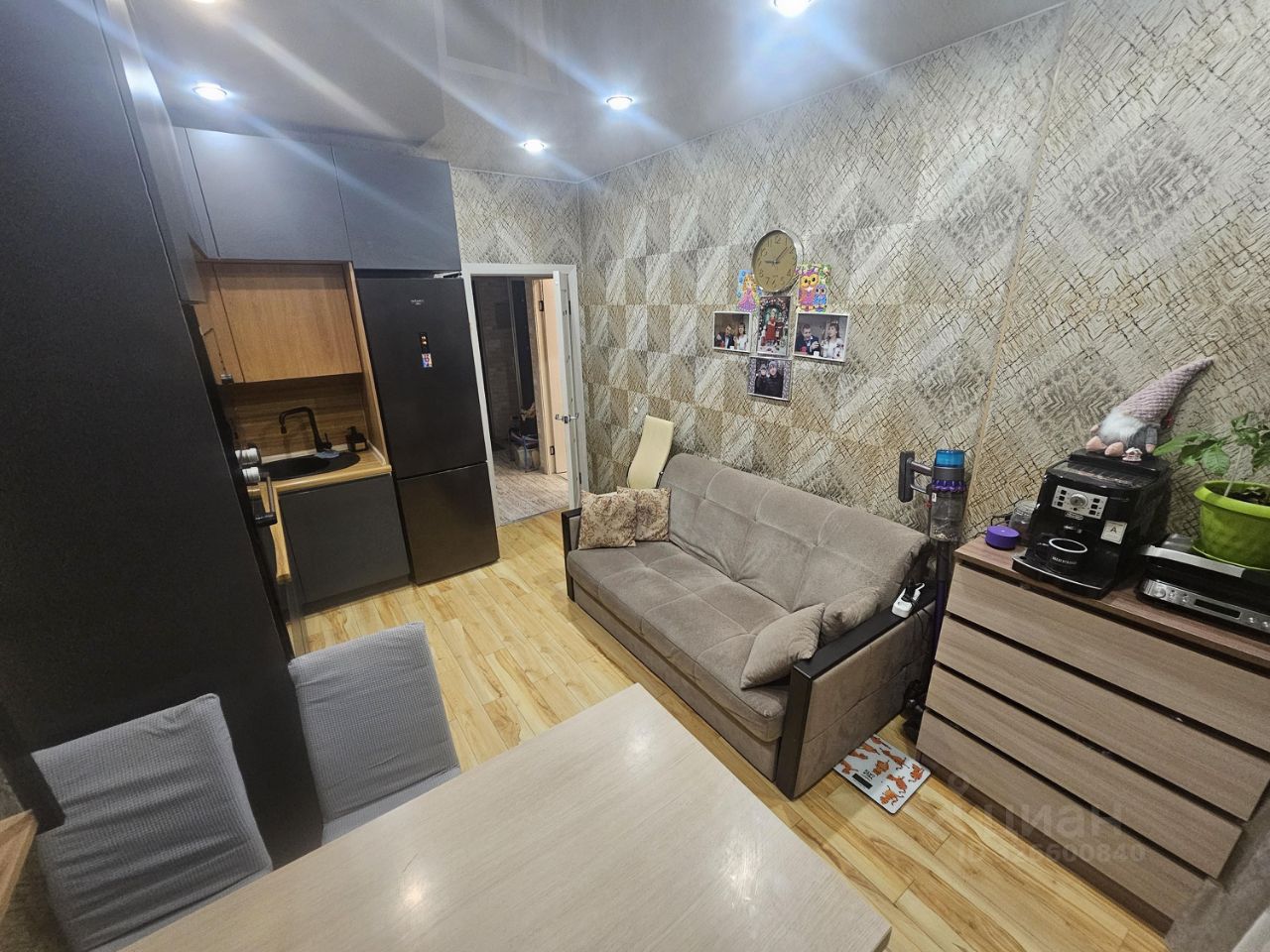В комнате и кухне ламинат -33 класс. По всей квартире натяжной потолок.