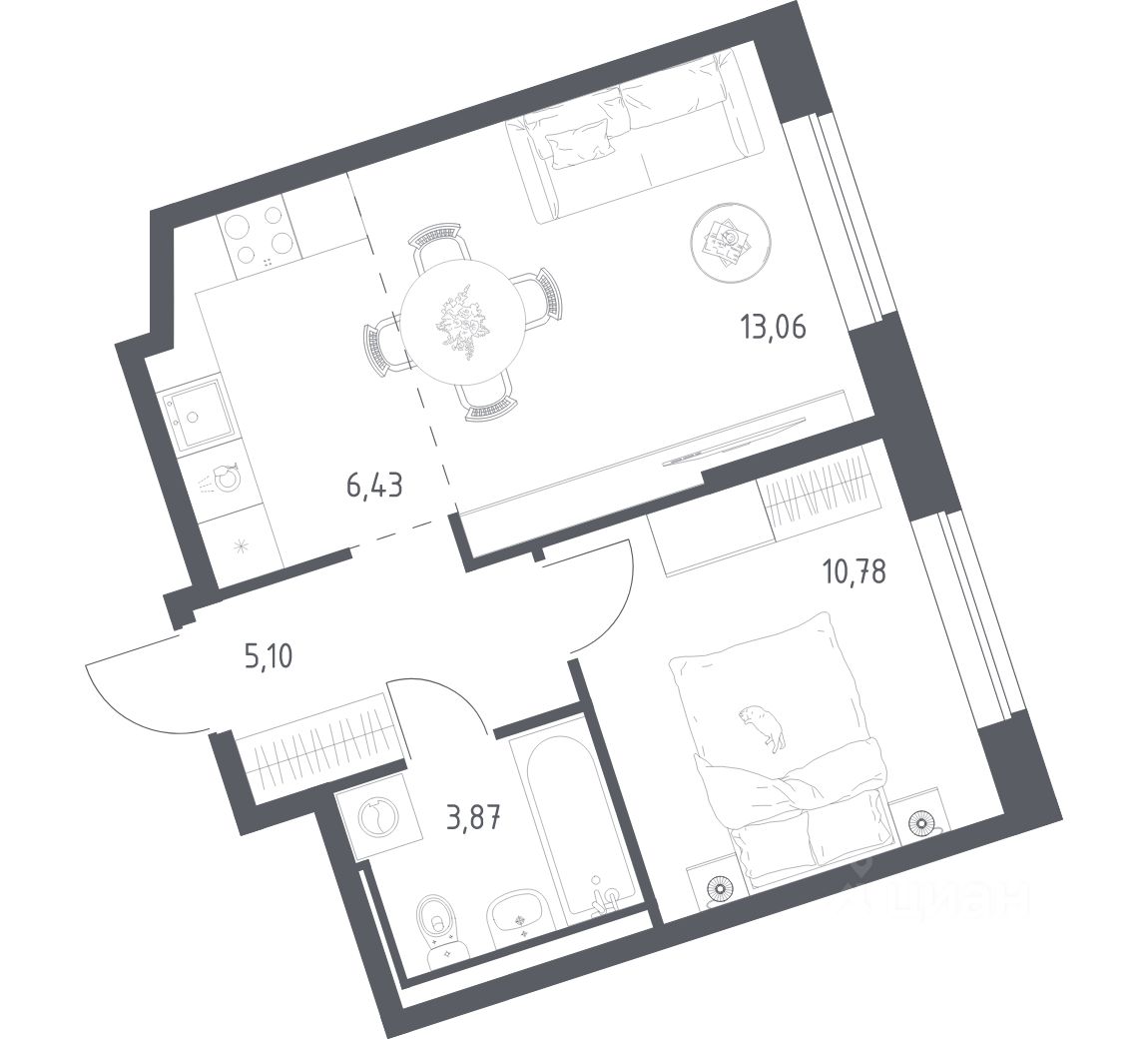 Строим кварталы для жизни с заботой о будущем. Предлагается 1-комнатная квартира комфорт-класса площадью 39,24 кв.м в корпусе 6-7 на 9-м этаже, в жилом комплексе "Живи! В Рыбацком".