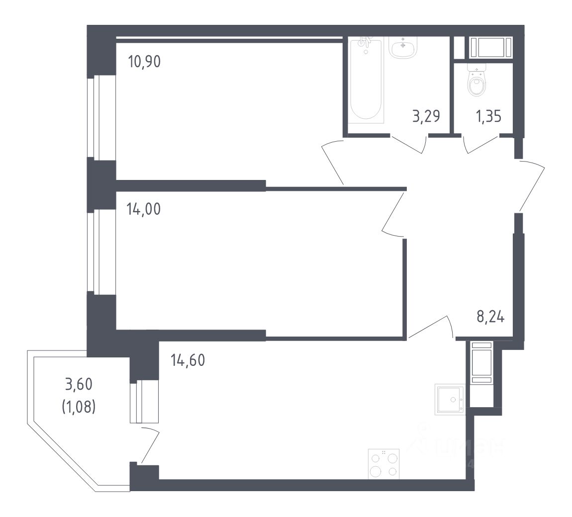 Строим кварталы для жизни с заботой о будущем. Предлагается 2-комнатная квартира комфорт-класса площадью 53,46 кв.м в корпусе 39 на 3-м этаже, в жилом комплексе "Живи! В Рыбацком".