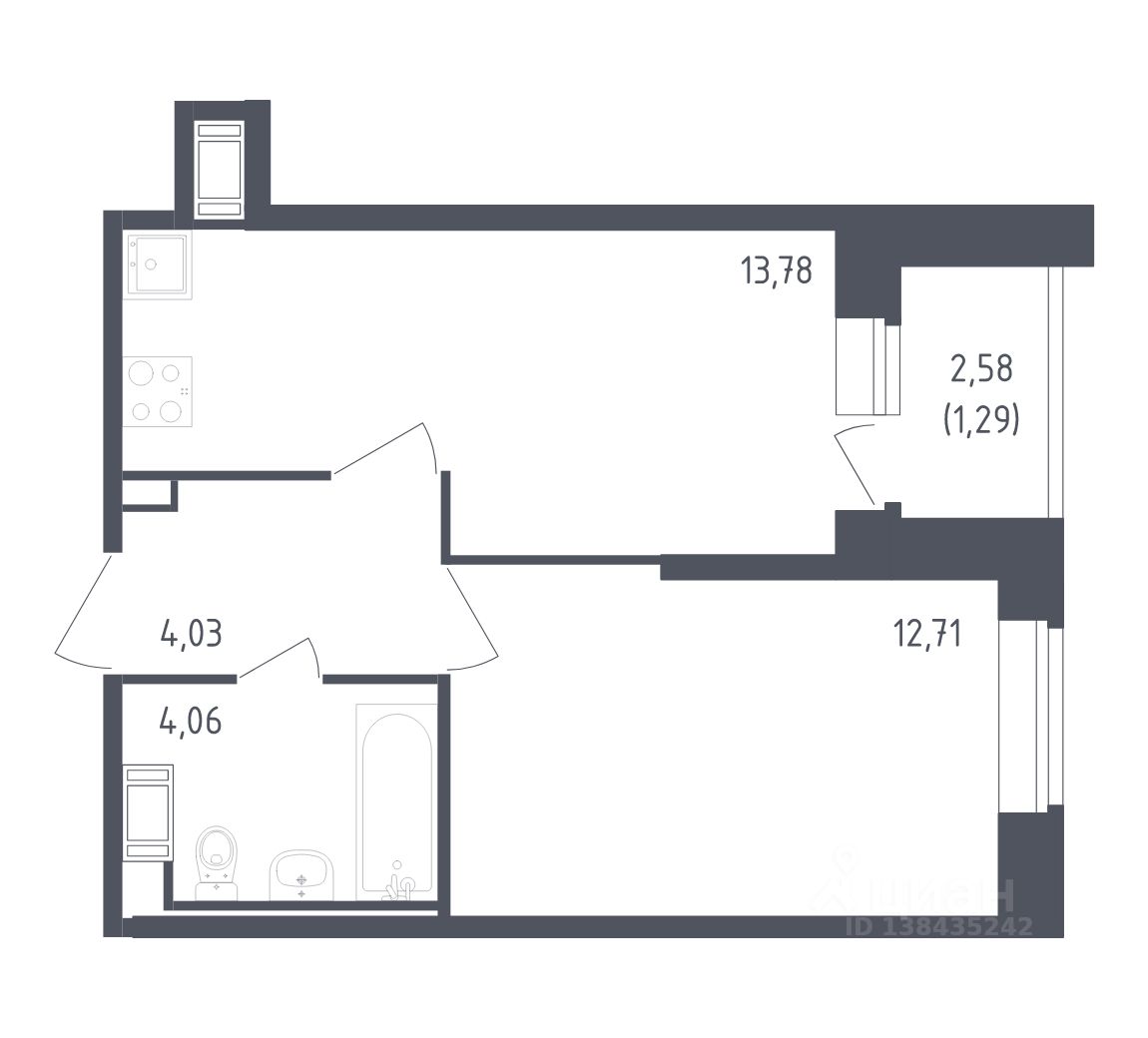 Жилая площадь12,7 м²
