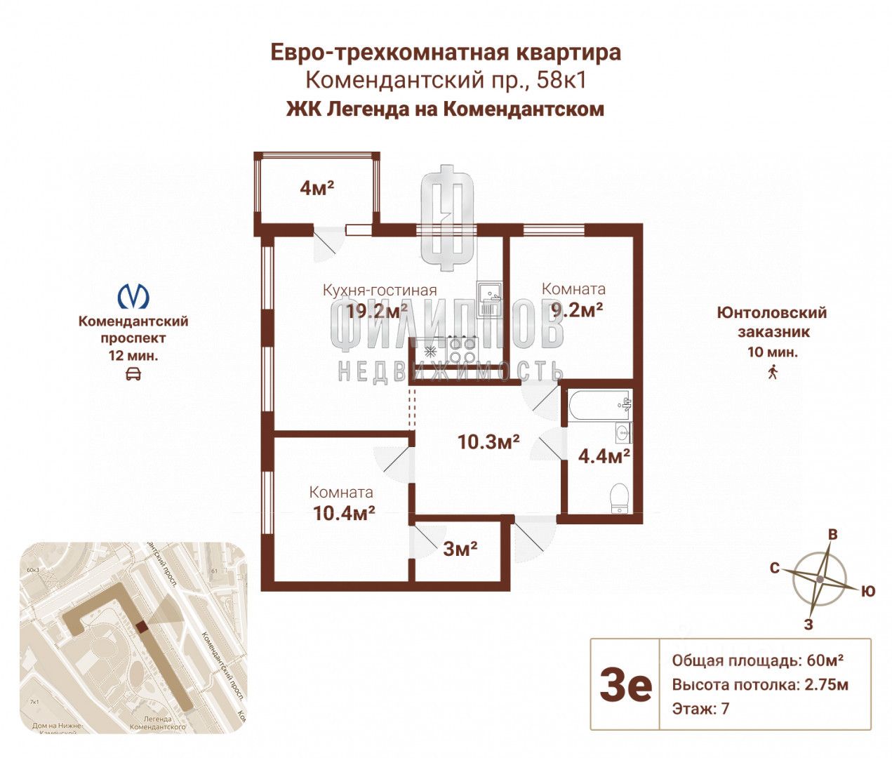 Вас ждут 60 квадратных метров настоящего комфорта и высоких стандартов: роскошная кухня-гостиная площадью 19,2 м2 станет центром притяжения — здесь удобно устраивать вечера с друзьями, проводить тёплые семейные ужины и встречать рассветы в компании самых дорогих людей. Высокие потолки 2,75 м и большие окна наполняют дом светом и ощущением простора, а из окон открывается приятный вид на Комендантский проспект.