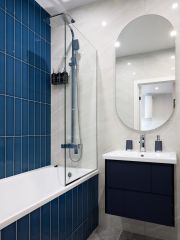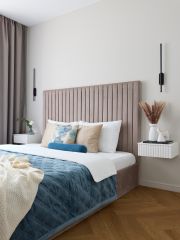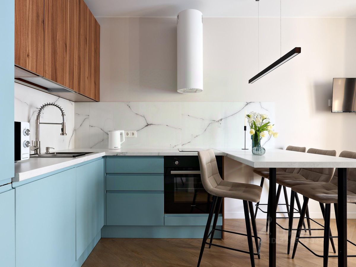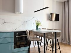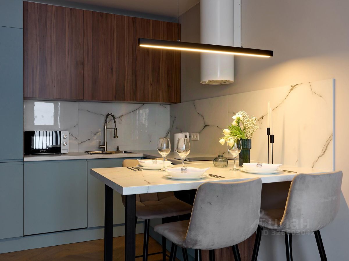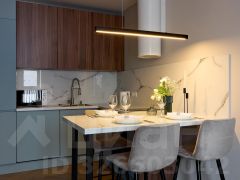 В квартире сделан дизайнерский ремонт с использованием качественных строительных материалов, поэтому она выглядит стильно и современно.
