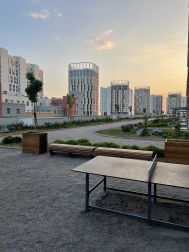 У жилого комплекса большая зеленая закрытая территория, на которой бесплатная гостевая парковка для жильцов (прямо у подъезда). Есть подземный паркинг.