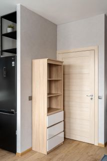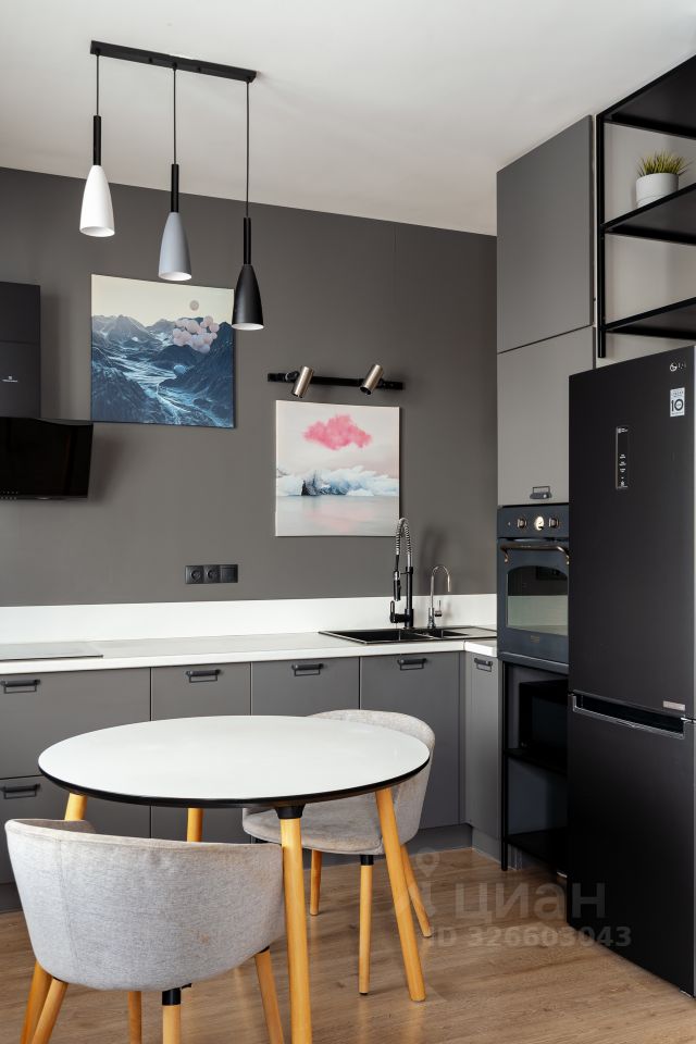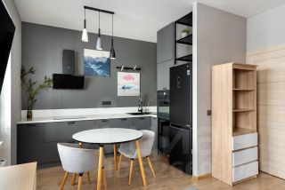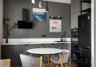 В квартире выполнен качественный ремонт, оборудована современной мебелью и техниой. Куххонный гарнитур со втсроенной техникой, обеденная зона и зона отдыха. Все что вы видите на фото остается новым хозяевам, за исключением детсой мебели и мелкой бытовой техники.