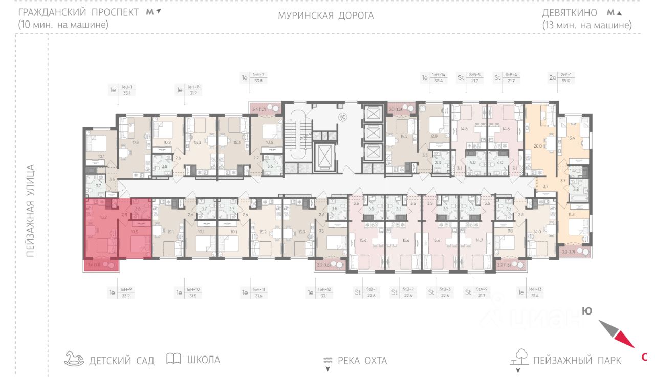• 20 минут на авто до станций "Гражданский проспект" и "Академическая";