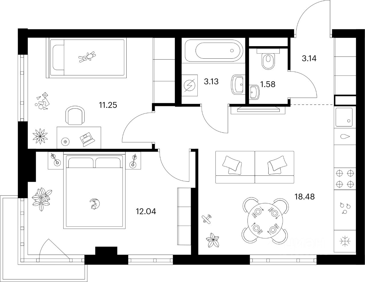 Продаётся 2-комн. квартира площадью 49,62 кв.м на 6 этаже 12 этажного дома (Корпус 4.1, Секция 3) проекта ПИК Таллинский парк. Светлый просторный подъезд на уровне земли, функциональная планировка, большие окна, c отделкой.