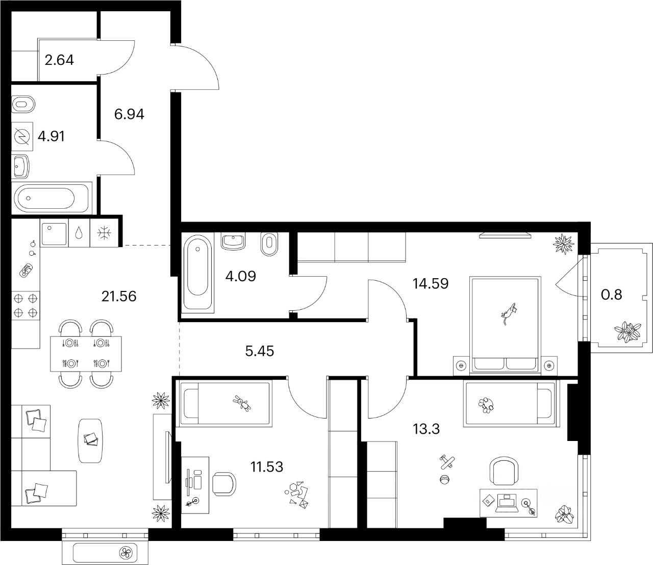 Продаётся 3-комн. квартира площадью 85,81 кв.м на 8 этаже 12 этажного дома (Корпус 4.2, Секция 1) проекта ПИК Таллинский парк. Светлый просторный подъезд на уровне земли, функциональная планировка, большие окна, без отделки.