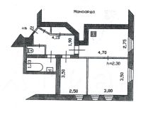 Коридор 7 м2, ванная 4 м2, туалет 2 м2, кухня 12,7 м2, комнаты 9 и 13 м2.