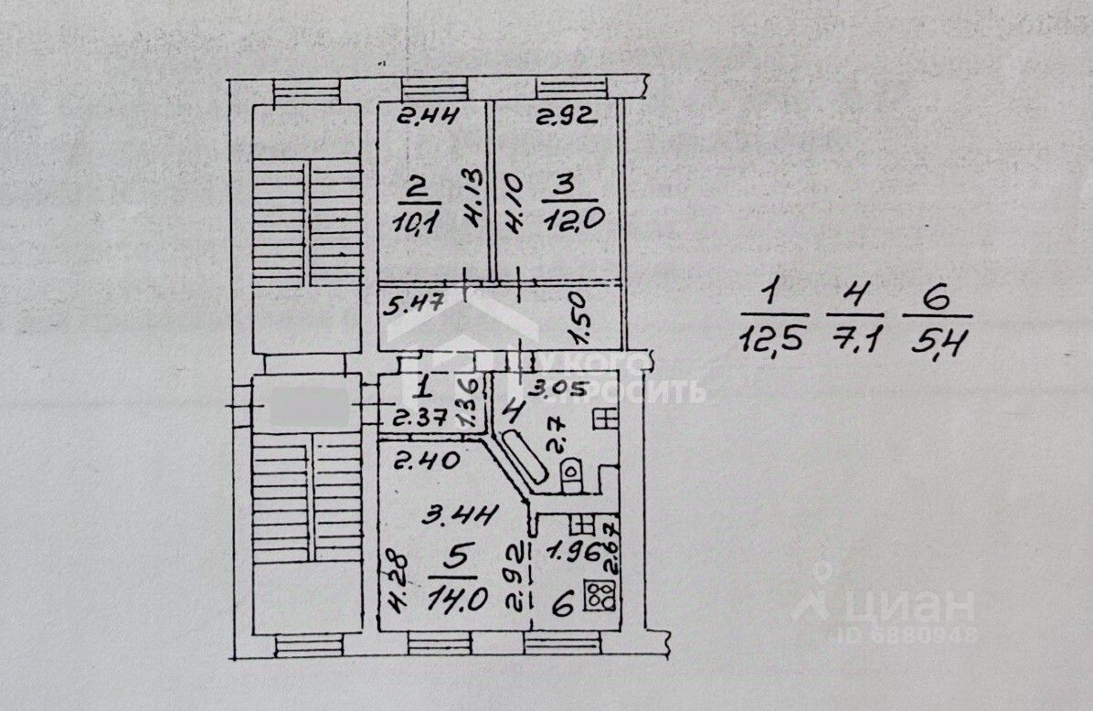 Продаётся трёхкомнатная квартира площадью 61,1 кв. м на 2 этаже трёхэтажного кирпичного дома 1956 года постройки.