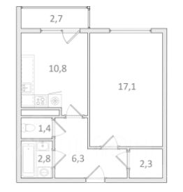 - Удачная квадратная кухня 10,8 кв.м. Практически максимальная в этих домах. В других планировках от 9 до 10 кв.м. В среднем на 15% больше!