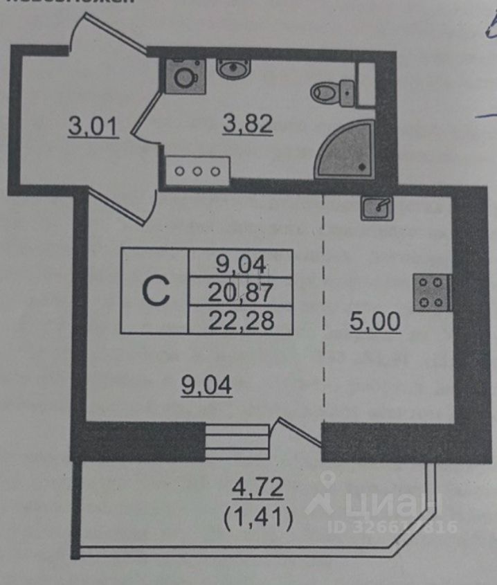 22,28 м²