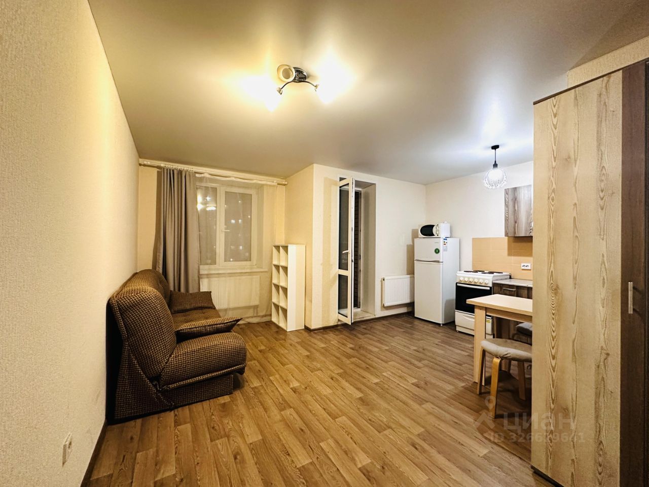 В прямой продаже просторная квартир-студия в 15 минутах ходьбы от станции метро Девяткино.