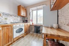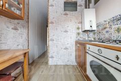 Остается также вся практичная мебель: встроенные шкафы, диван, голландский книжный шкаф, кухня из дерева со всей техникой (холодильник Liebherr, духовой шкаф SMEG, стиральная машина).