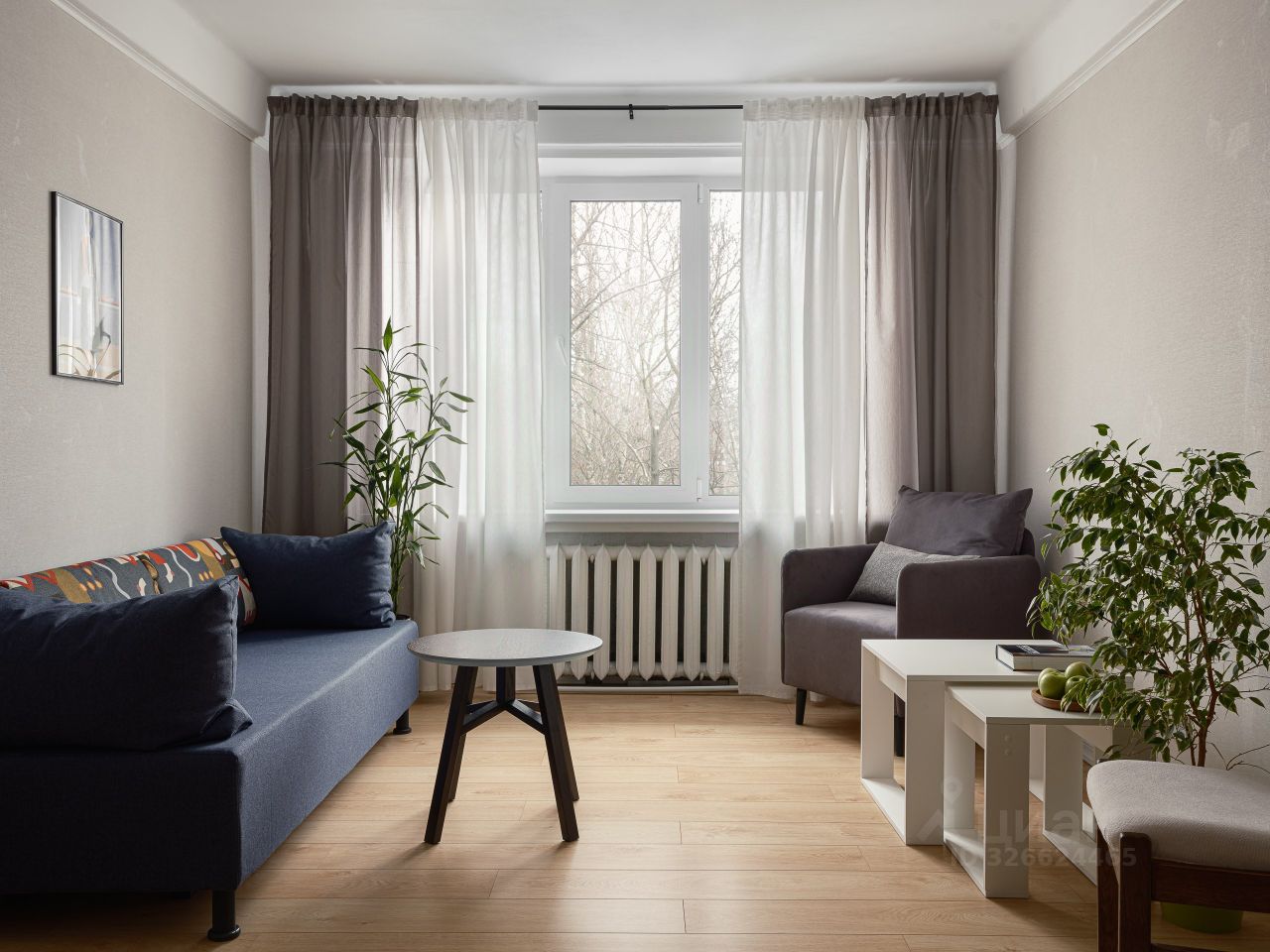 Тёплая атмосфера — мягкое освещение, живые растения, картины, домашний уют в каждой детали. Квартира полностью готова для проживания.