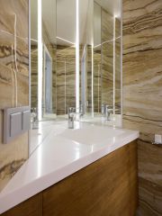 Несколько сценариев освещения в каждом помещении позволяют сделать пространство либо ярким и энергичным, либо мягким и интимным, подстраивая атмосферу под ваше состояние. Система мультирум наполняет квартиру музыкой, которая буквально сопровождает вас из комнаты в комнату, создавая фон для любого настроения.