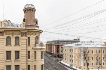 Шикарный вид из окон! Изумительное арочное окно и вид на фасад и башенку доходного дома напротив! Всего 5 изящных окон с широкими подоконниками.