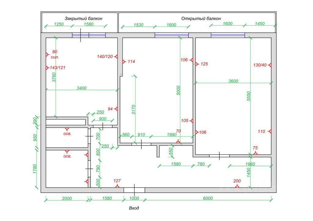 дизайн-проект с расстановкой мебели и планом электрики в подарок
