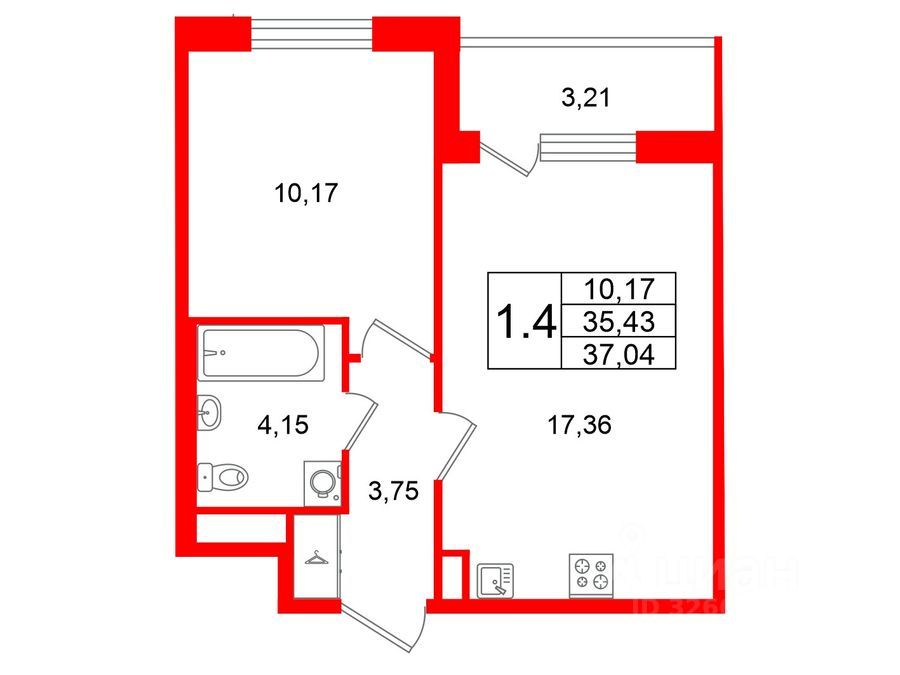 35,43 м²
