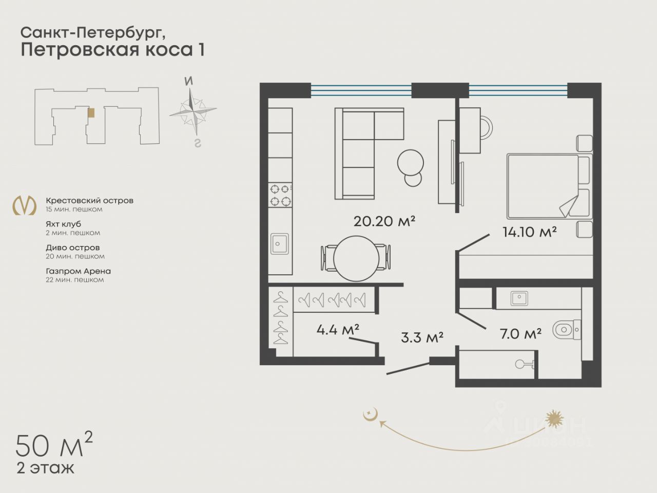 Арт. 129420493 Единственный подобный вариант! Квартира с одной спальней и просторной кухней-гостиной в, вероятно, лучшем доме на Петровском острове.
