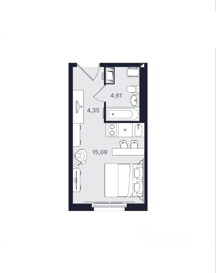 Апартаменты площадью 24,05 м² на комфортном 15 этаже