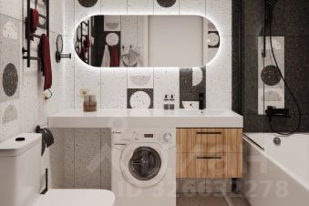 • В санузле: керамогранит на полу, электрический полотенцесушитель, подвесной унитаз, раковина с смесителем, акриловая ванна с экраном и смесителем, выводы для стиральной машины