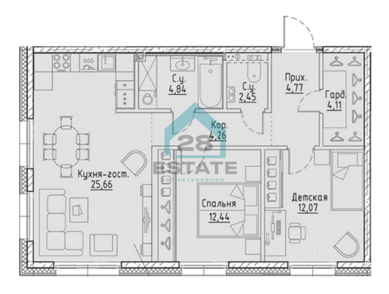 Арт. 129840118 Шикарная 2к.квартира располагается в новом трендовом центре Петербурга — вблизи Строгановского парка и набережной Черной Речки в районе Ушаковской набережной.