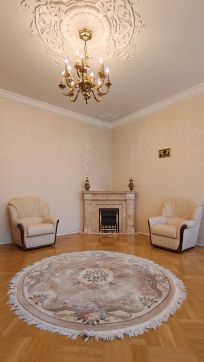 Во внутренней отделке и элементах интерьера квартиры применены дорогие материалы, ручная лепка, ценные породы дерева и камня, установлена надежная мебель и техника от ведущих мировых производителей. Полы и двери сделаны музейными мастерами по дереву.