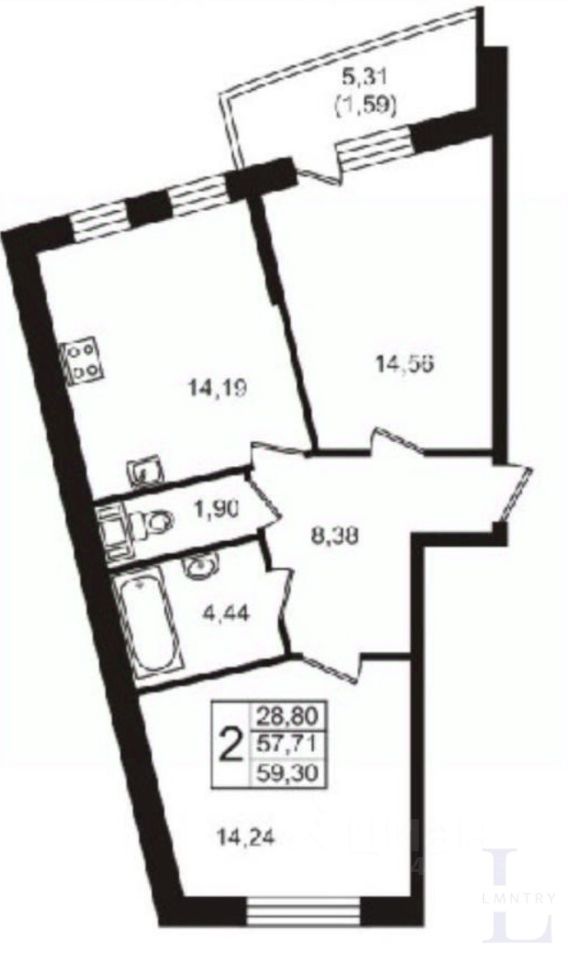 Комнаты: Две изолированные комнаты площадью 14.56 кв.м. и 14.24 кв.м. предоставляют достаточно пространства для комфортного проживания.