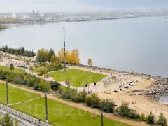 Собственный пляж:Особым преимуществом является благоустроенный пляж, расположенный непосредственно у дома. Здесь есть всё для идеального отдыха: скамейки, шезлонги, качели, беседки и детские площадки.