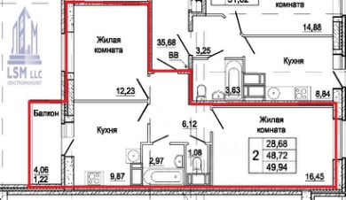 Квартира расположена на 3 этаже 12-этажного монолитного дома, что гарантирует тишину, прочность конструкции и долговечность. Общая площадь жилья составляет 48,6 м, из которых 28,5 м - это просторная жилая зона, а 9,9 м - отдельная кухня, где с лёгкостью поместится обеденный стол для всей семьи.