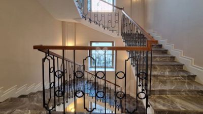 - Восстановленная историческая стилистика интерьеров входных групп и парадных лестниц подчеркивает статус построек.