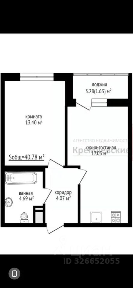 Лоджия 3,28 кв.м.