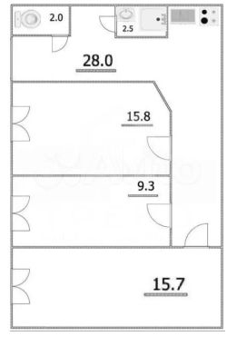 - Высота потолков: 2,3 м.