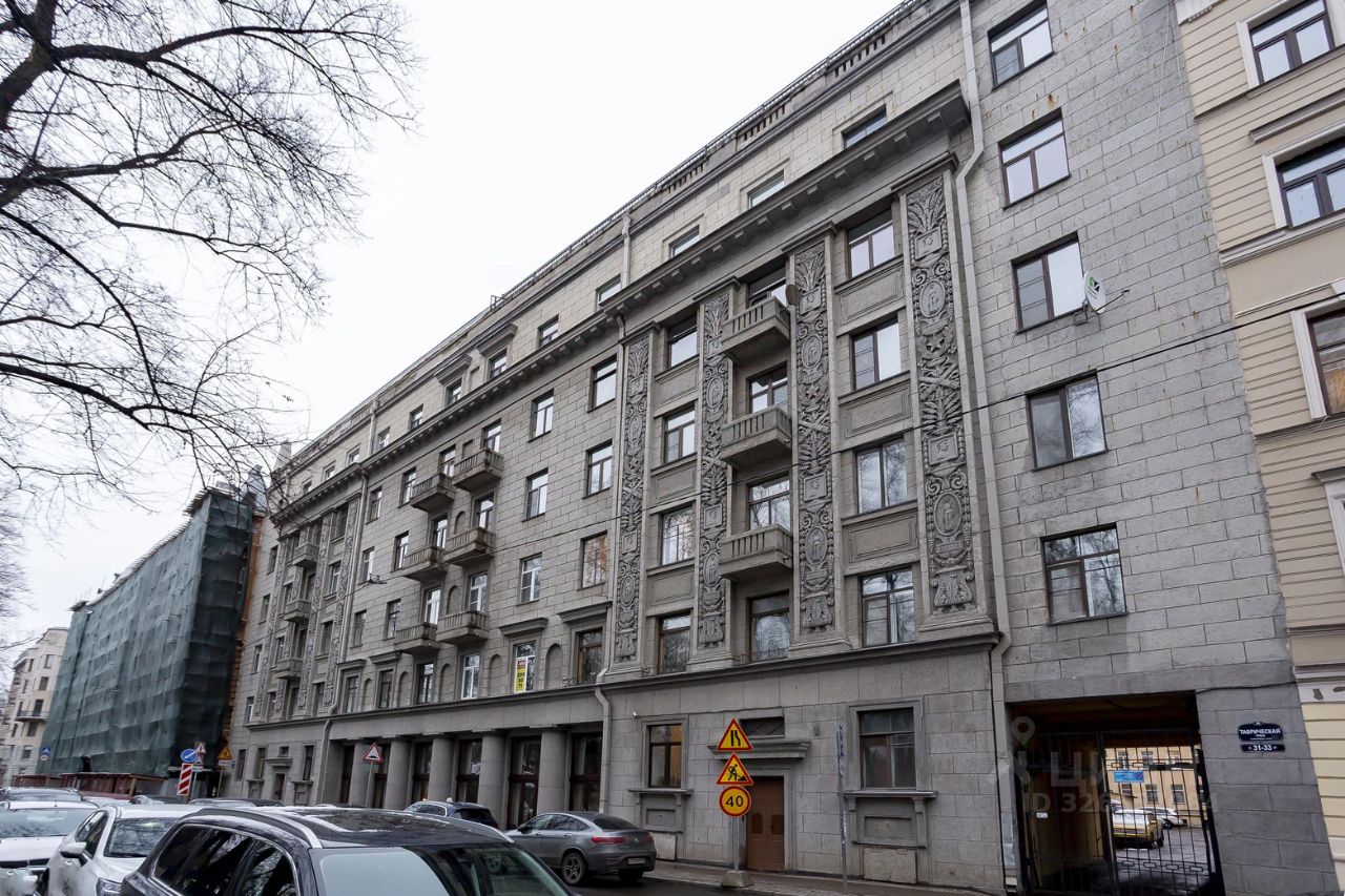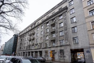Недавно произведён ремонт фасадов. Пассажирский лифт. Видеонаблюдение. Всего две квартиры на этаже. Вход в парадную с Таврической улицы.