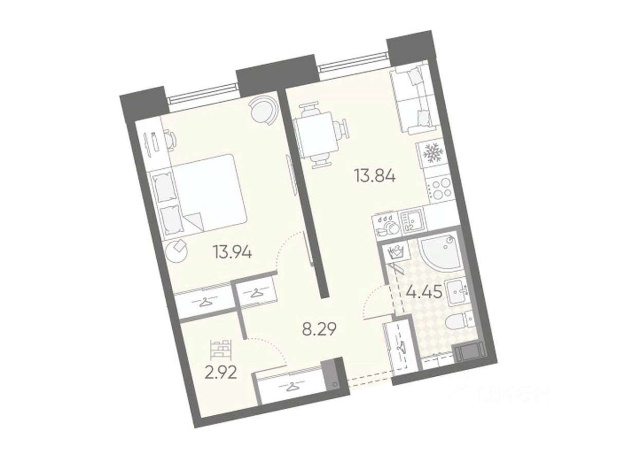 Продается 1-комнатная квартира в ЖК "Бульвар Грина" на 4 этаже. Общая площадь составляет 43.44 кв. м. Квартира с white box отделкой. Срок сдачи: 4-кв. 2028. Жилой комплекс "Бульвар Грина" располагается по адресу Санкт-Петербург, Василеостровский.