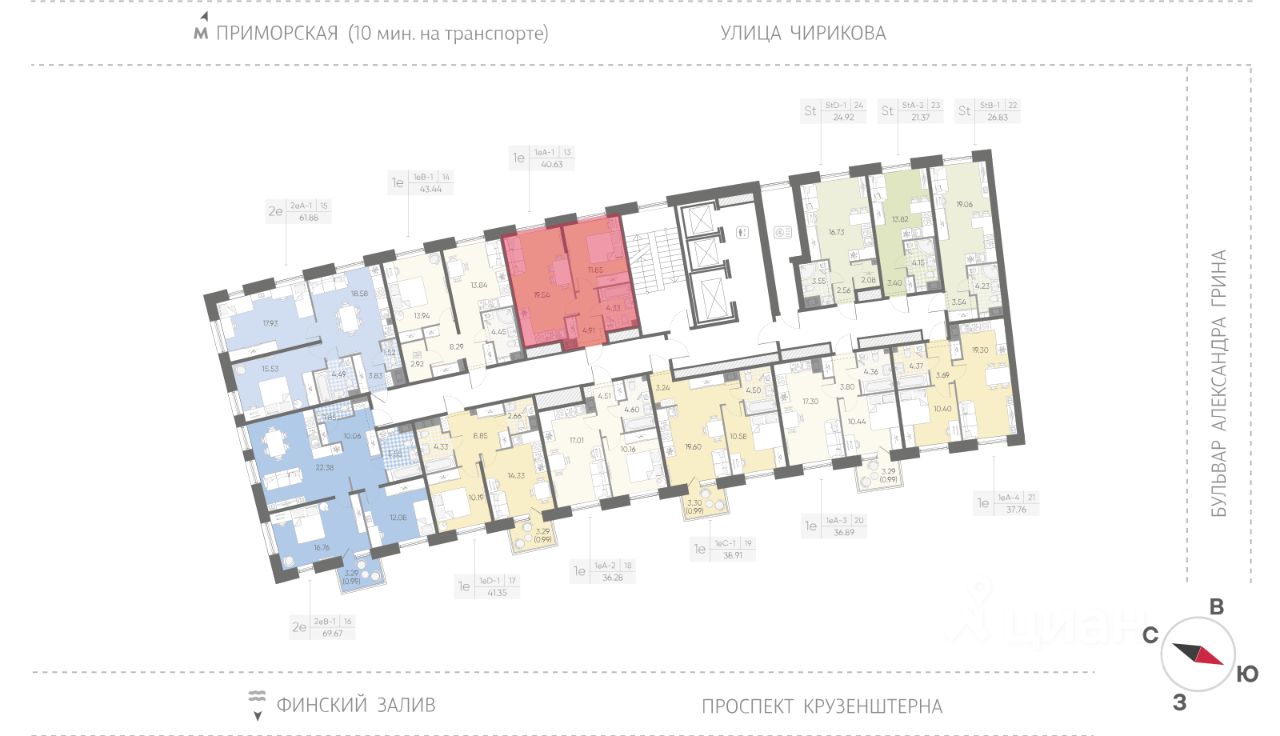 Продается 1-комнатная квартира в ЖК "Бульвар Грина" на 4 этаже. Общая площадь составляет 40.63 кв. м. Квартира с white box отделкой. Срок сдачи: 4-кв. 2028. Жилой комплекс "Бульвар Грина" располагается по адресу Санкт-Петербург, Василеостровский.