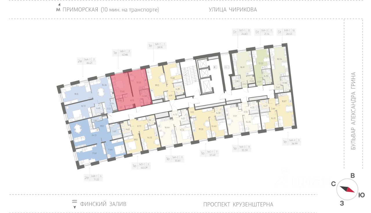 Продается 1-комнатная квартира в ЖК "Бульвар Грина" на 3 этаже. Общая площадь составляет 42.68 кв. м. Квартира с white box отделкой. Срок сдачи: 4-кв. 2028. Жилой комплекс "Бульвар Грина" располагается по адресу Санкт-Петербург, Василеостровский.